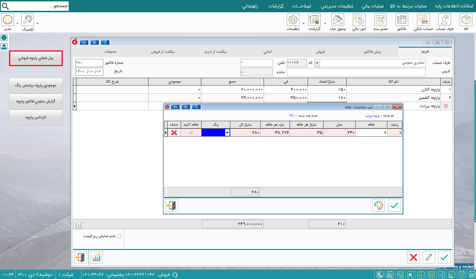 ✓ پنل شغلی اختصاصی پارچه فروشی برای سهولت در کار خرید و فروش