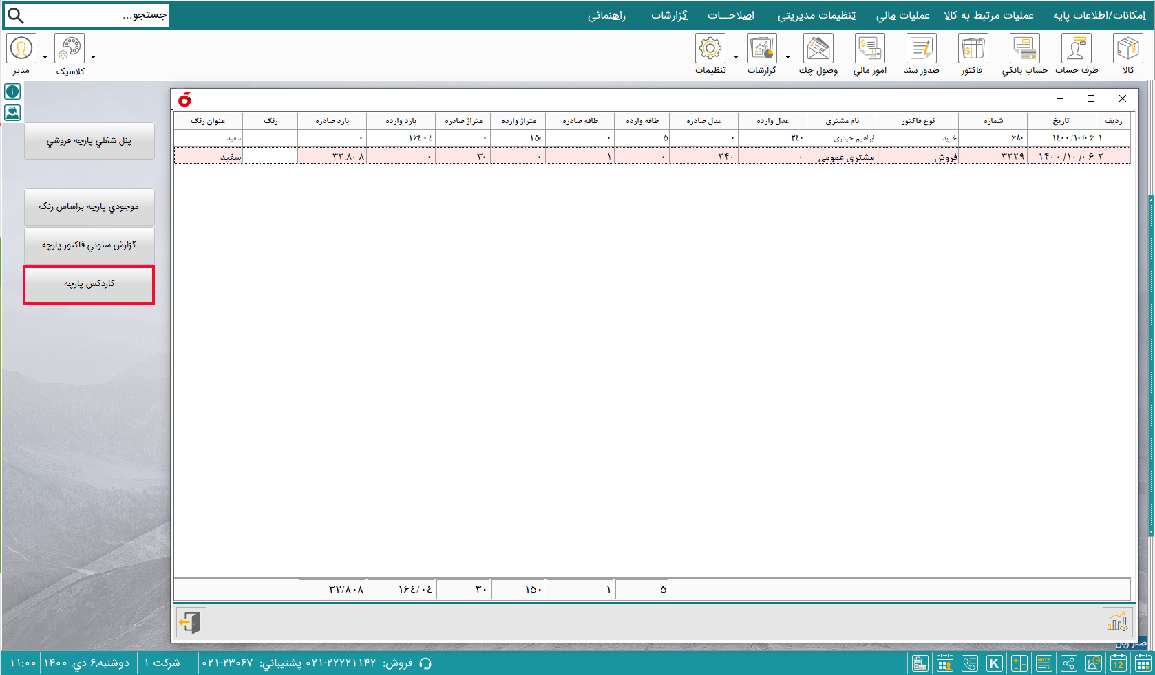 ✓ گزارش کاردکس کالا بر اساس عدل، طاقه، متراژ، یارد و رنگ